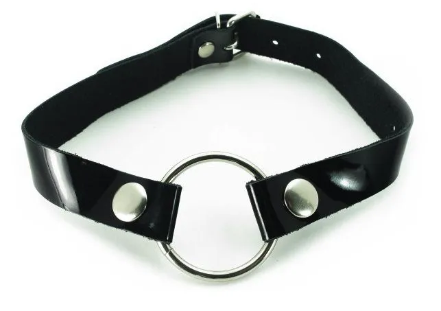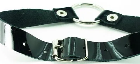 Отзывы о Кляп-кольцо на чёрных лаковых ремешках с кнопками
