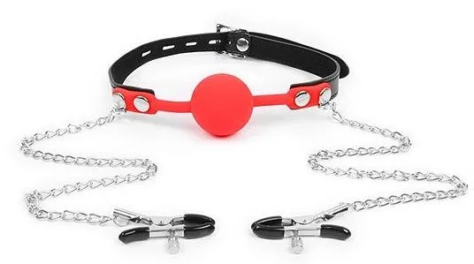 Отзывы о Красный кляп-шарик с зажимами на соски на металлической цепочке