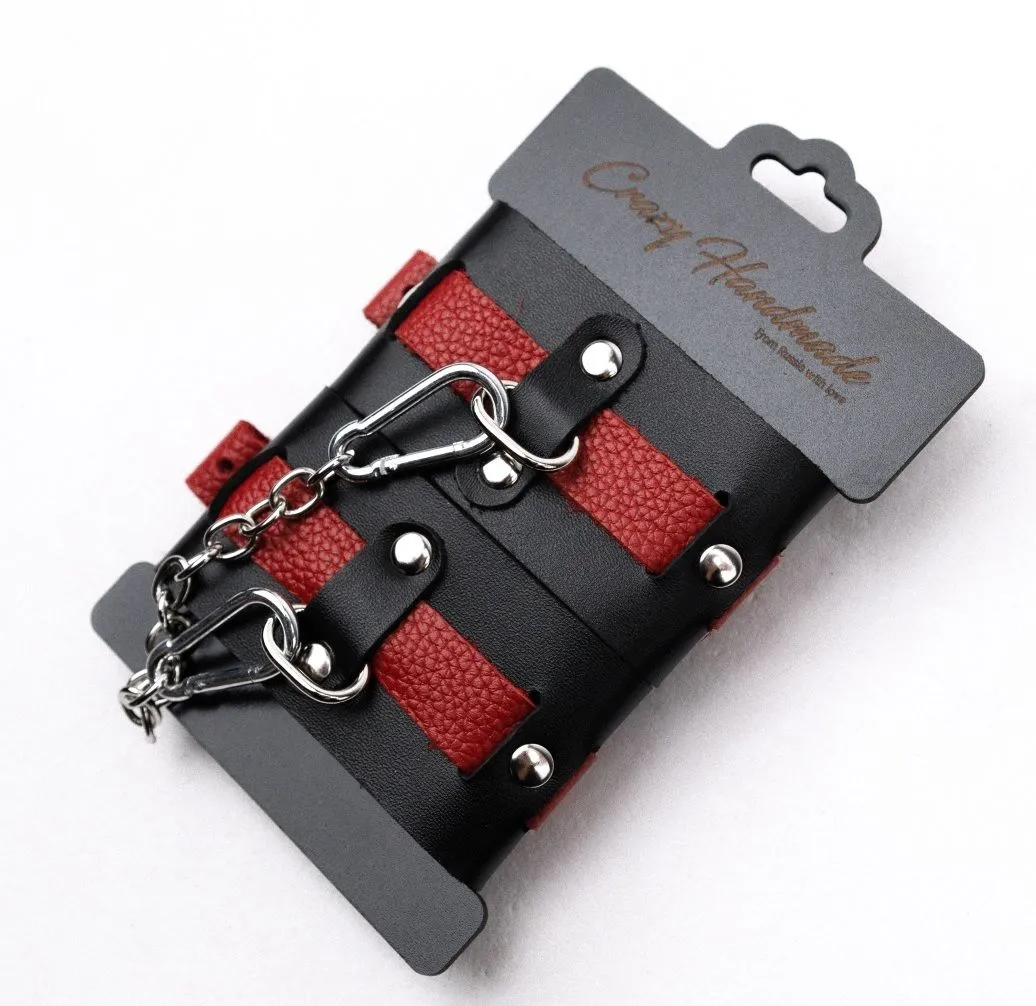 Отзывы о Черно-красные кожаные наручники на металлической сцепке