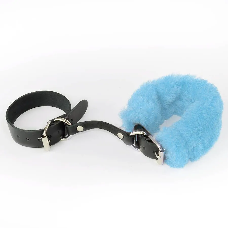 Отзывы о Черные кожаные наручники со съемной голубой опушкой