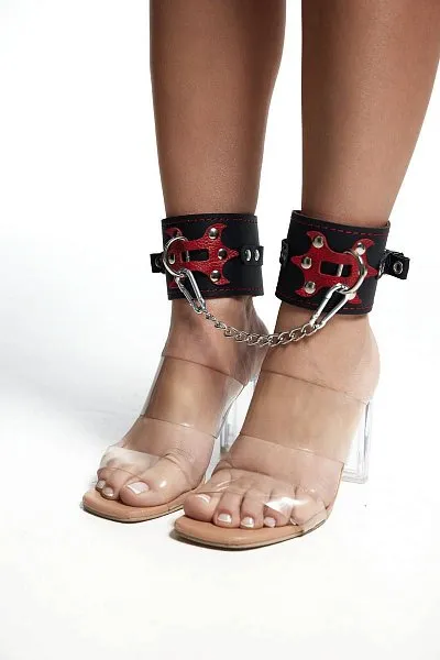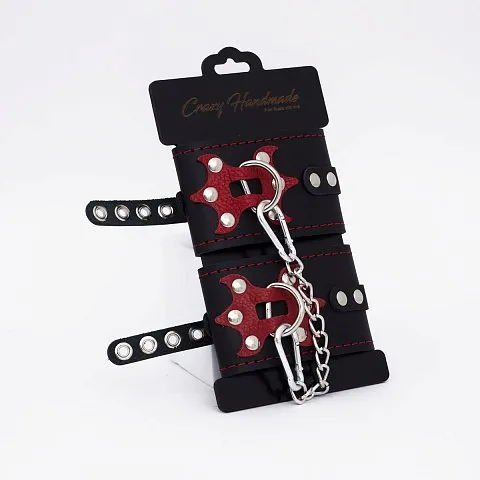 Отзывы о Черные кожаные оковы с красным декором и строчкой