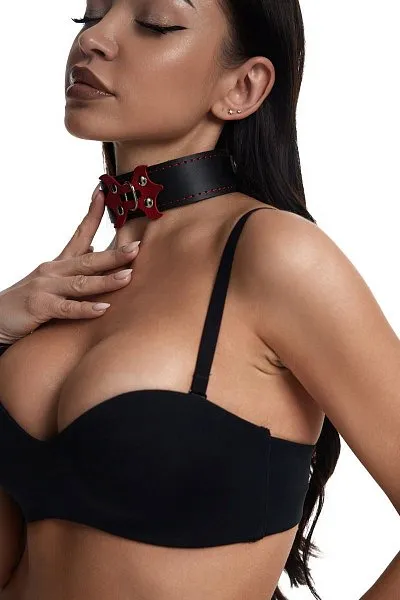 Отзывы о Черный ошейник с красным декором и строчкой