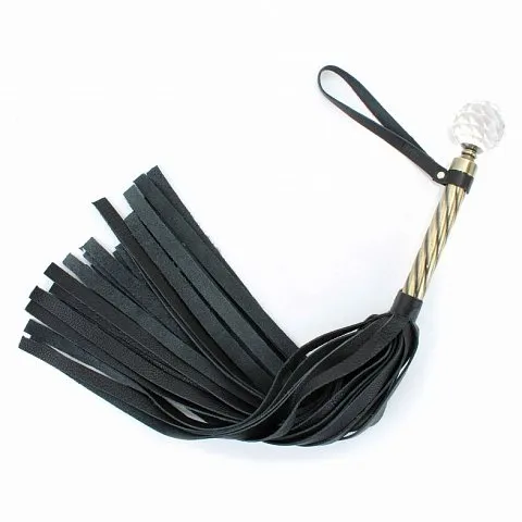 Отзывы о Черная плеть с широкими хлыстами и металлической ручкой с кристаллом - 60 см.