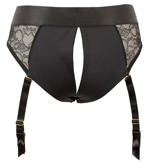 Черные трусики из эластичного материала, смеси микрофибры и кружева, обеспечивающие исключительный комфорт. Двойной слой спереди с вставкой и незаметным эластичным кольцом для легкого введения дилдо с присоской. Любое другое дилдо/вибратор с присоской (максимальный диаметр 4 см) также может быть вставлено. Завлекающий разрез над ягодицами. Подтяжки регулируются и полностью съемные.
