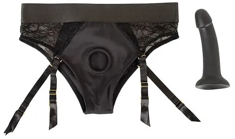 Стильный комплект с трусиками и дилдо. Помимо чувственного вида и комфортного ощущения трусиков, этот комплект также радует своей продуманной функциональностью: Дилдо быстро и легко вставляется в трусики для приятного проникновения. И оно остается прочно и надежно на месте даже во время самых страстных движений. Для большего (и нового) удовольствия для двоих!