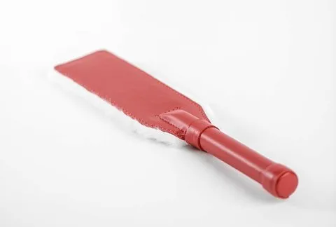 Отзывы о Красно-белая двустороння шлепалка из натуральной кожи и меха - 35 см.