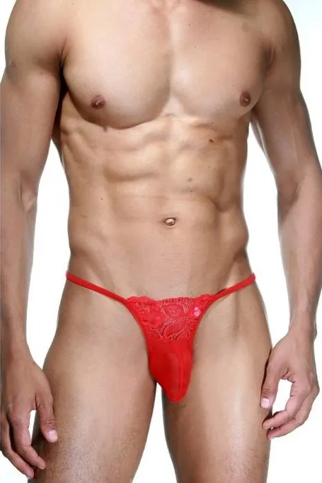 Отзывы о Красные мужские трусы-стринги с кружевом