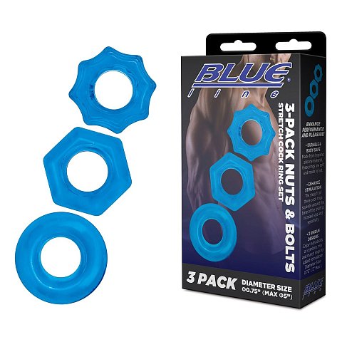 Отзывы о Комплект из трех голубых колец для эрекции 3-Pack Nuts Bolts Stretch Cock Ring Set