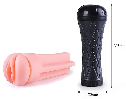 Отзывы о Телесный мастурбатор-вагина в черной колбе с вибрацией