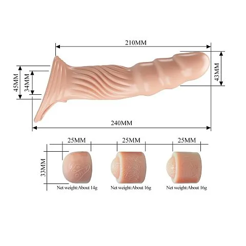 Отзывы о Телесная насадка на пенис с тремя вкладышами-удлинителями - 24 см.