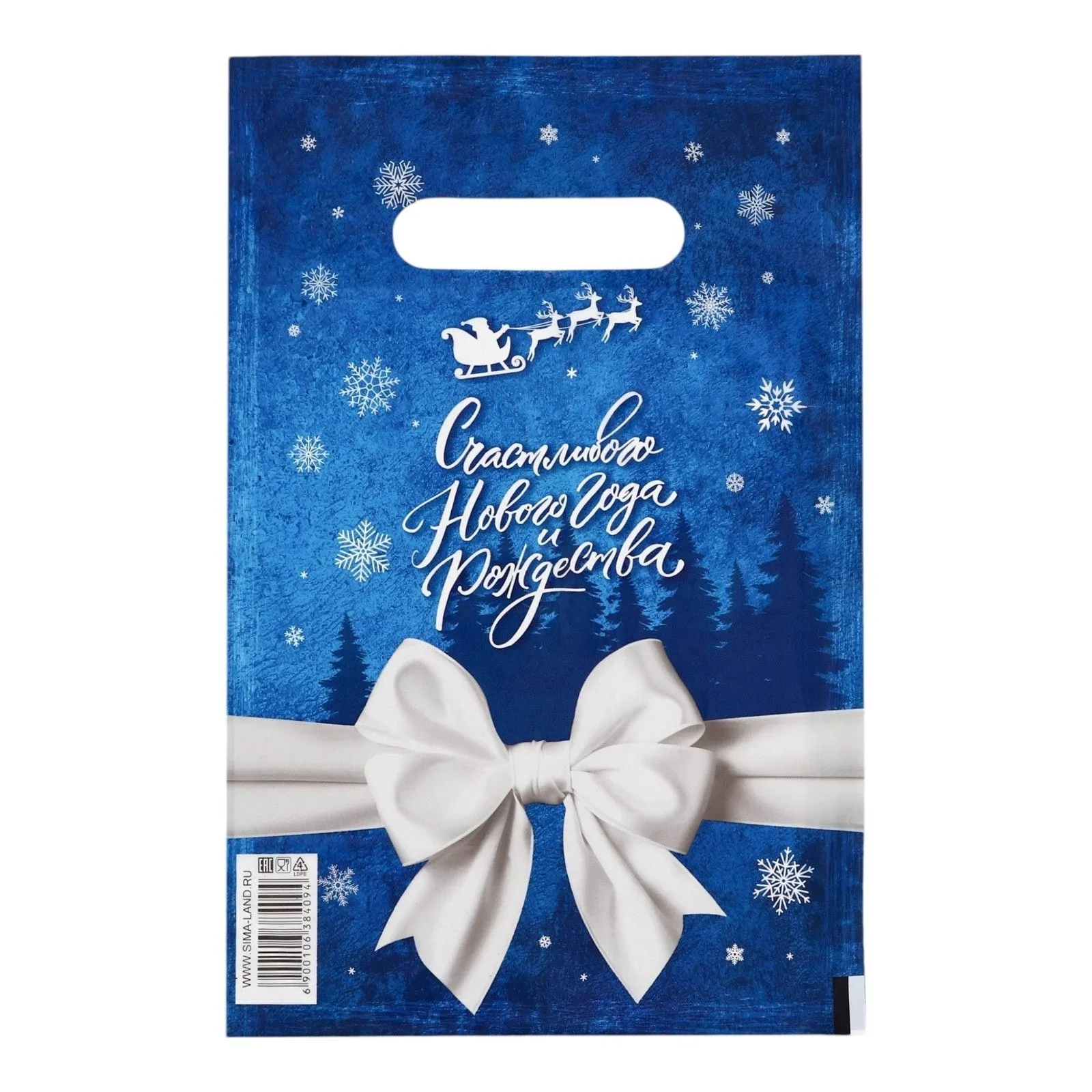 Отзывы о Сине-белый подарочный новогодний пакет с вырубной ручкой (20х30 см)