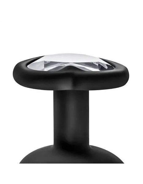 Черная анальная втулка с прозрачным кристаллом Bling Plug Medium (арт. BL-95845) от Blush Novelties из коллекции Temptasia — элегантный аксессуар для анальной стимуляции, сочетающий эстетику и функциональность. Втулка выполнена из высококачественного силикона и украшена прозрачным кристаллом в форме сердца.