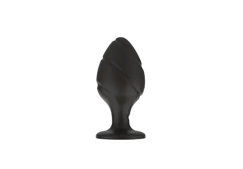 Черная малая силиконовая анальная пробка с ложбинками по диагонали (арт. 451532) — безопасная, комфортная и стимулирующая игрушка для анальных ласк. Идеально подходит для начинающих.