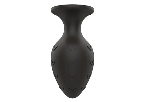 Черная средняя силиконовая анальная пробка с рельефом в виде галочек (арт. 451525) — безопасная, комфортная и стимулирующая игрушка для анальных ласк. Этот аксессуар для интимных игр идеально подойдет начинающим.