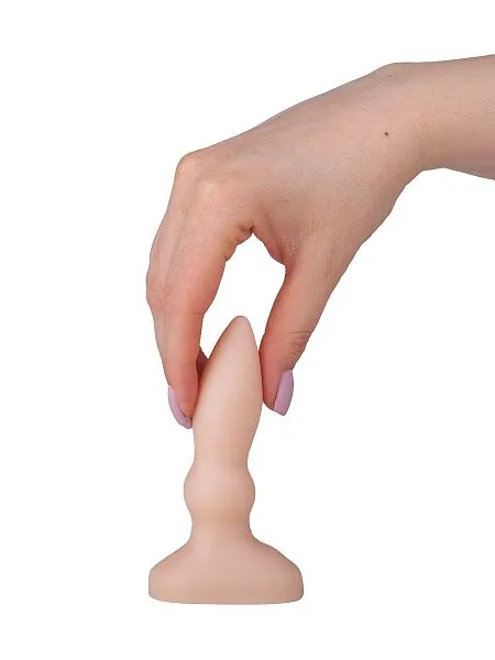 Плаг изготовлен из высококачественного ПВХ телесного цвета. Особенности: длина 10 см (рабочая часть 9 см), каплевидный изогнутый кончик для точечной стимуляции, отсутствие швов для комфортного использования.