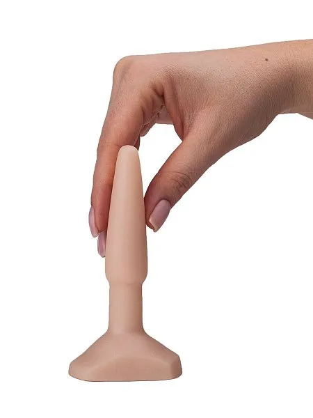 Изготовлен из гладкого бесшовного ПВХ, имеет классическую конусообразную форму длиной 11,5 см. Телесный цвет и небольшой размер обеспечивают естественные ощущения и легкое введение.