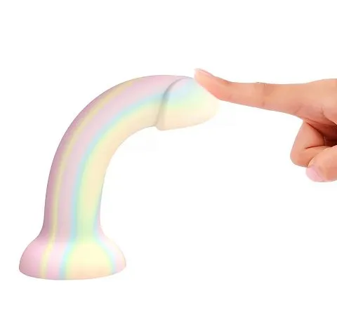 Подарите себе незабываемые ощущения с фаллоимитатором Fantasia от Love to Love! Этот изысканный секс-девайс из 100% жидкого медицинского силикона порадует вас ультрамягкой текстурой и невероятной гибкостью. Его уникальный дизайн с пастельными полосами, светящимися в темноте, добавит пикантности вашим интимным играм. Изогнутая форма обеспечивает максимальный комфорт при вагинальном и анальном использовании, а удобная присоска расширяет возможности.