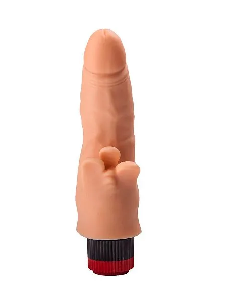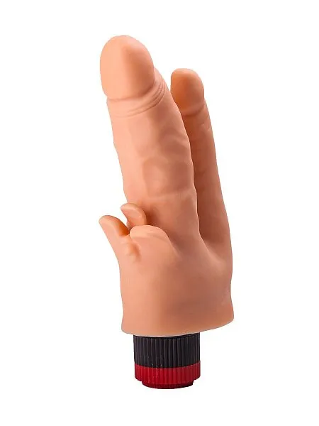 Этот телесного цвета вибромассажер (17 см) из упругого материала объединяет два вибратора в одном. Анальный отросток диаметром 2,1 см и вагинальная часть обеспечивают интенсивную стимуляцию. Мультискоростная вибрация регулируется колесиком, а мягкие лепестки гарантируют нежный массаж клитора. Работает от 2 батареек типа АА. Изготовлен из А-Полимера и ПВХ.