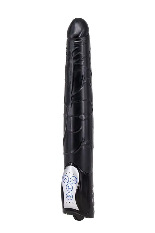 Чёрный вибромассажер Long John Realistic Thrusting Vibrator — реалистичные толчки, 3 скорости, 7 режимов, 20 см. Вагинальный вибратор премиум-класса.
