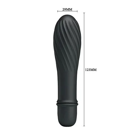 Этот стильный чёрный вибратор Solomon, длиной 12,3 см, изготовлен из высококачественного силикона. Он оснащён 10 режимами вибрации, позволяющими подобрать идеальную интенсивность. Бороздки на поверхности усиливают ощущения. Компактный размер и тип AAA батарейки обеспечивают удобство использования.