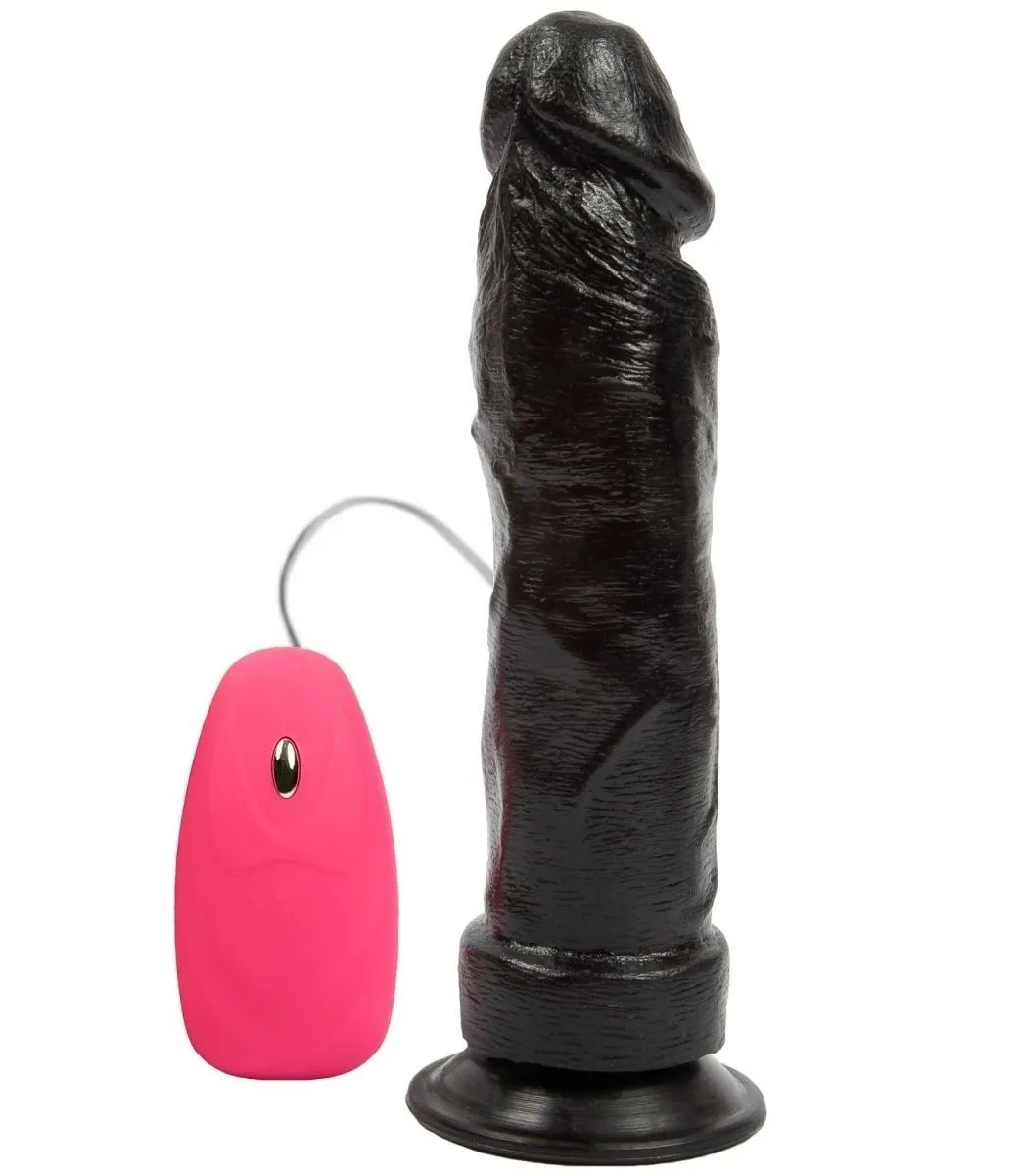 Почувствуйте наслаждение с Черным вибромассажером на присоске с проводным пультом - 20,5 см., оцените его реалистичный размер и мощную вибрацию!