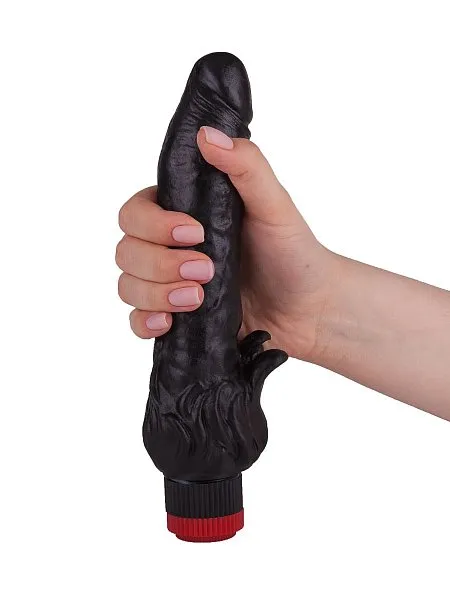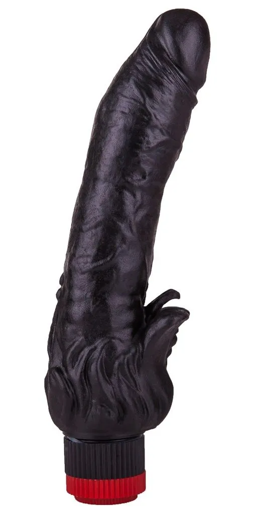 Почувствуйте незабываемый оргазм с Чёрным вибратором с клиторальными лепестками, оцените его мощную вибрацию и реалистичную форму!