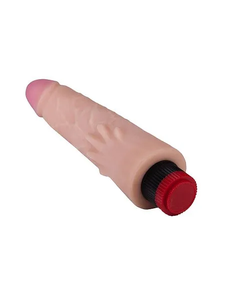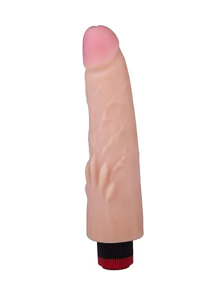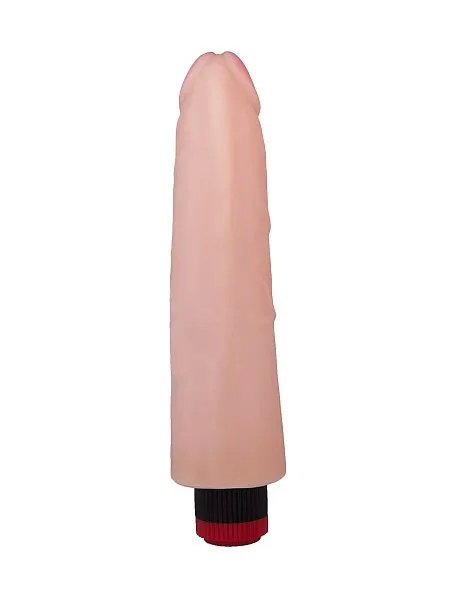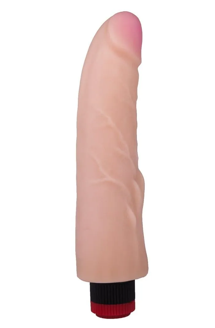 Этот вибратор длиной 21,5 см имеет реалистичную форму с ярко выраженной головкой (3,9 см в диаметре) и изготовлен из мягкого неоскина, имитирующего кожу. Мультискоростная вибрация по всей длине и продольные выступы у основания усиливают ощущения. Работает от 2 батареек типа АА (входят в комплект).