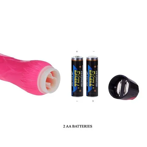 Его длина составляет 24 см, он выполнен из термопластичной резины (TPR), имитирующей кожу, и оснащен удобным колёсиком для регулировки мощности вибрации. Работает от 2 батареек типа АА (в комплект не входят). Реалистичный дизайн и ярко-розовый цвет делают его привлекательным и удобным в использовании. Упакован в пластиковую коробку.