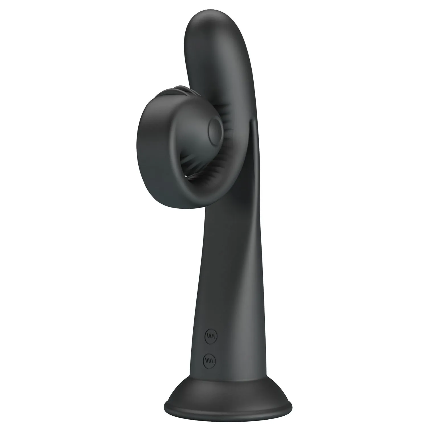 Черный вибратор на присоске с закрученным клиторальным отростком – 20 см — инновационная форма, 10 режимов вибрации, мощная стимуляция. Это вагинальный и клиторальный вибратор премиум-класса.