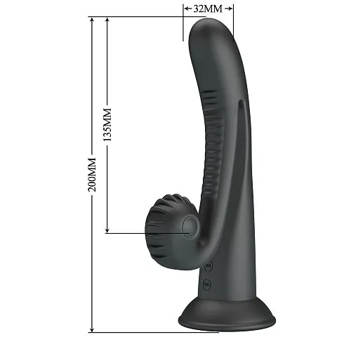 Почувствуйте незабываемые ощущения с Черным вибратором на присоске с закрученным клиторальным отростком – 20 см, благодаря его уникальной форме и 10 режимам вибрации!